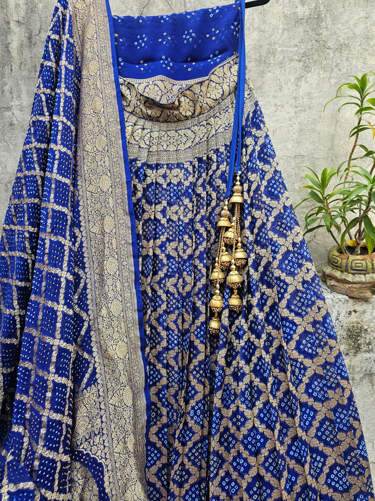 Blue Pure Banarsi Georgette Bandhani Lehenga