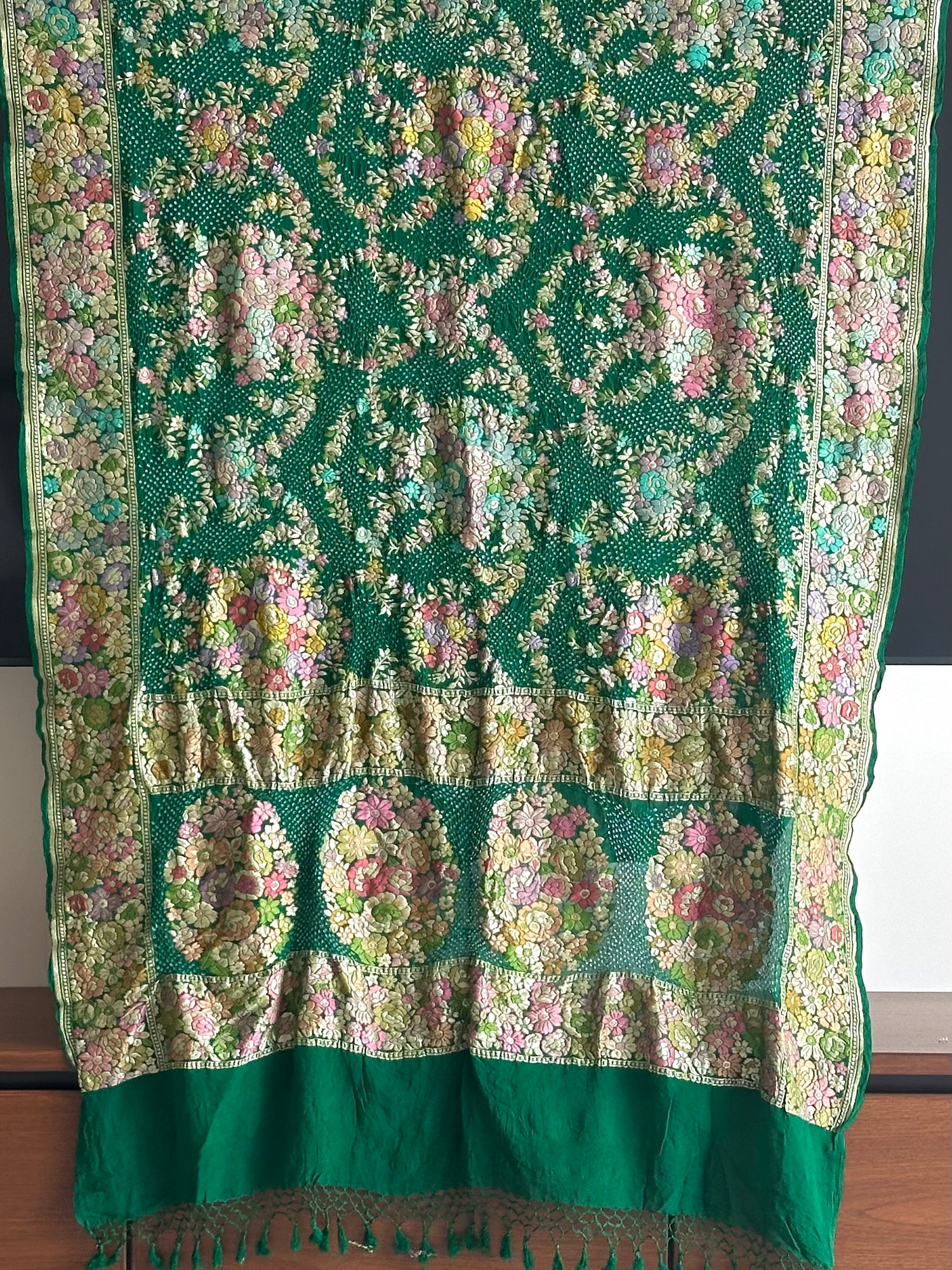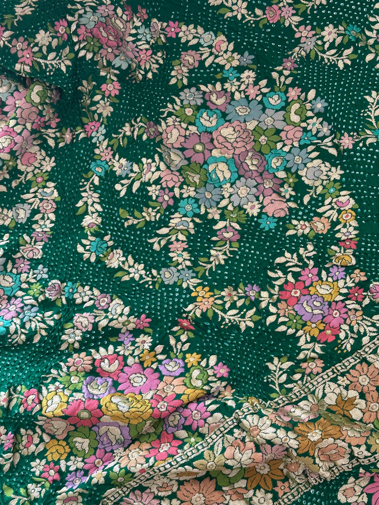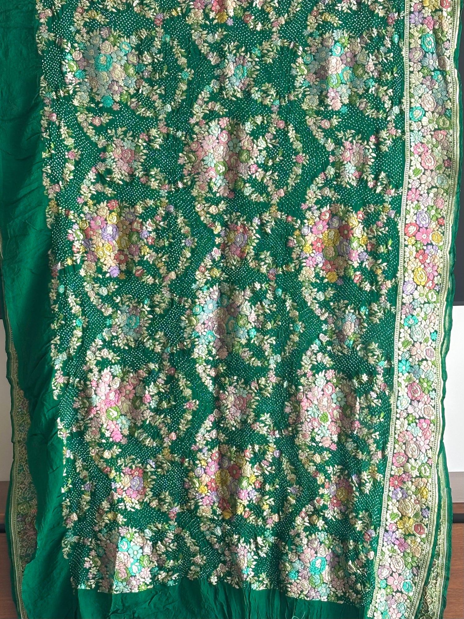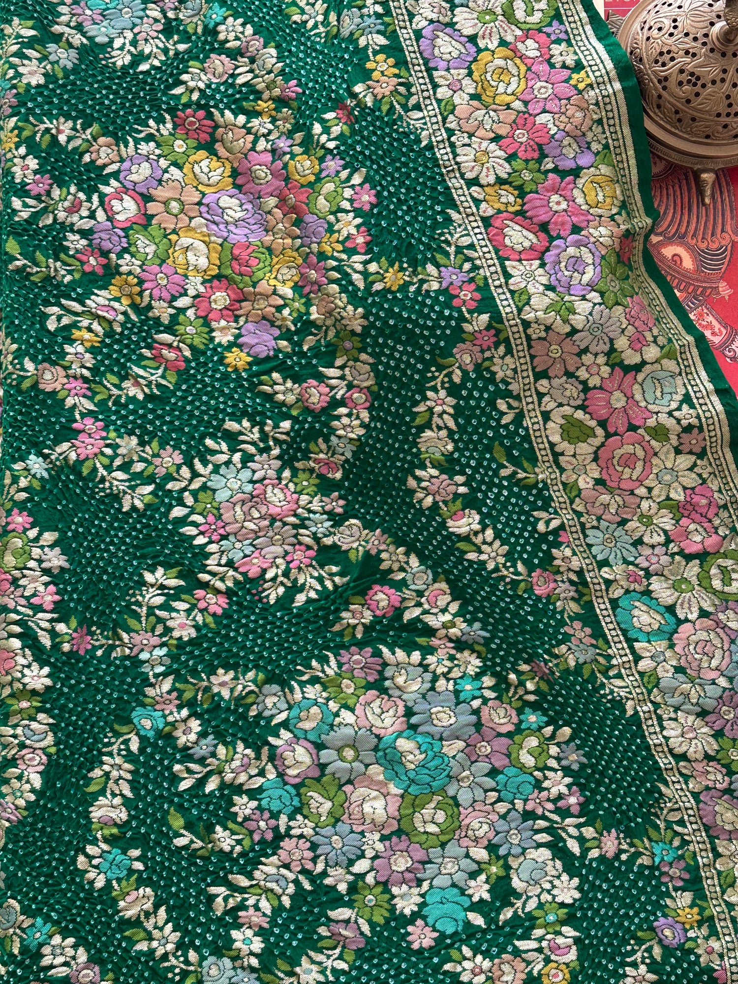 Serene Floral Green Banarasi Georgette Bandhani Saree
