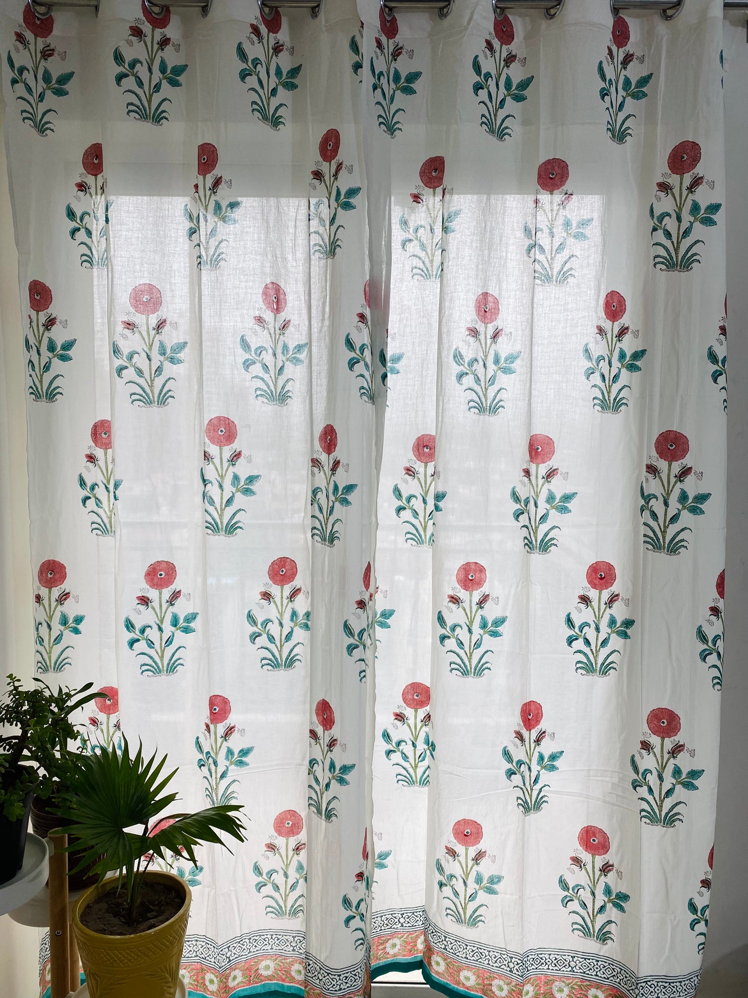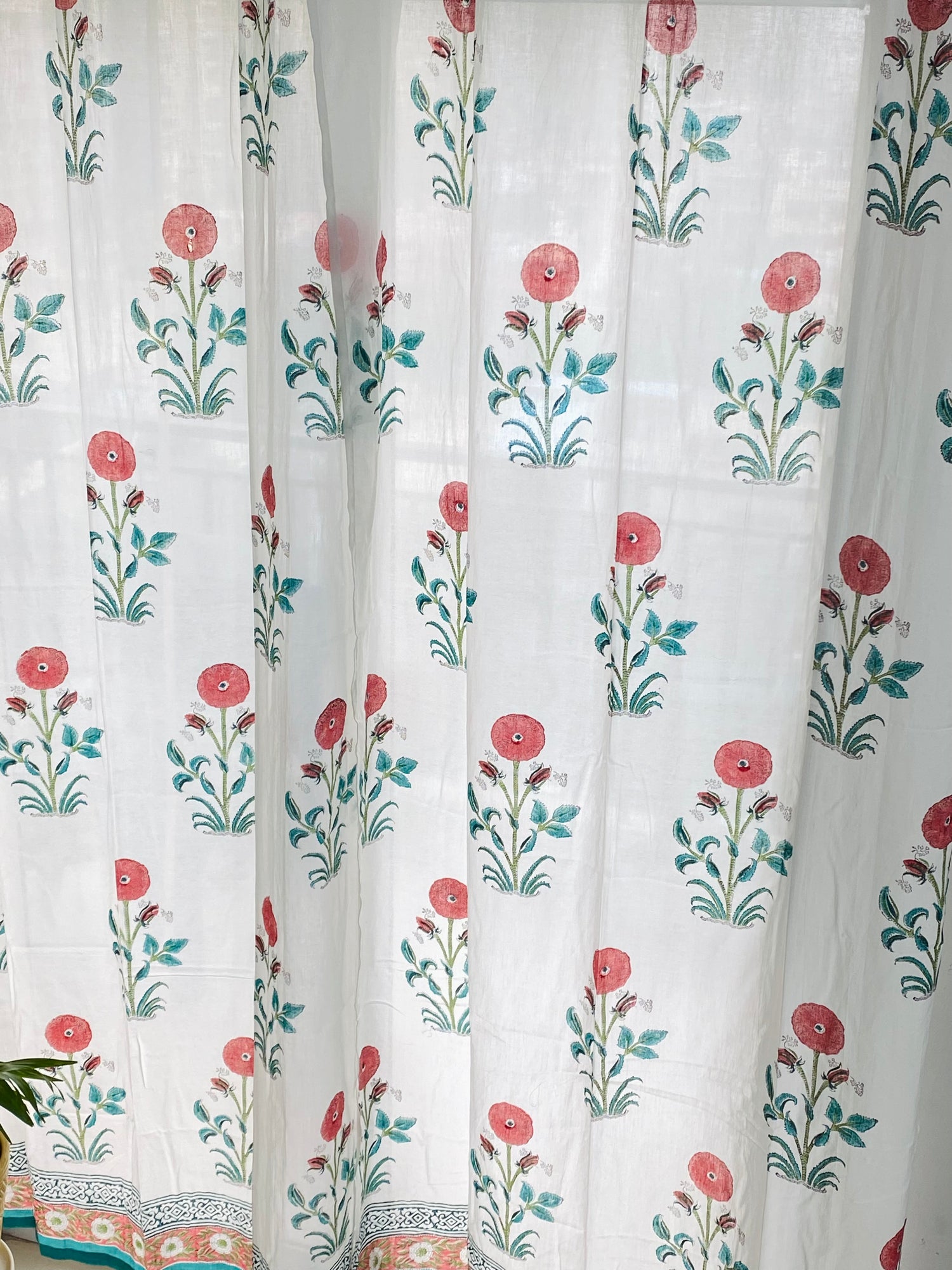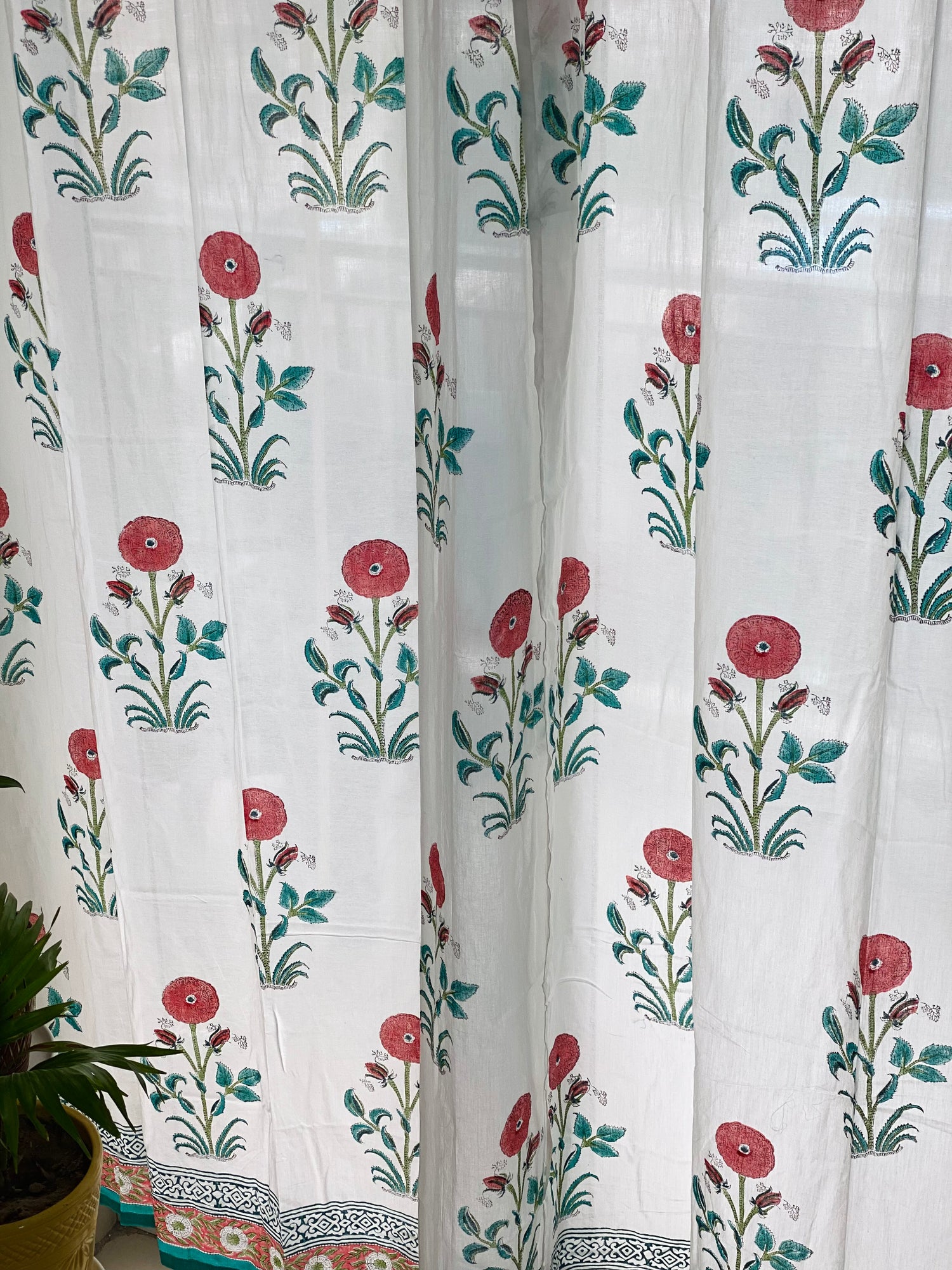 Hand Block Printed Cotton curtain. The curtain is made by the artisans of Rajasthan using azo-free dyes.
