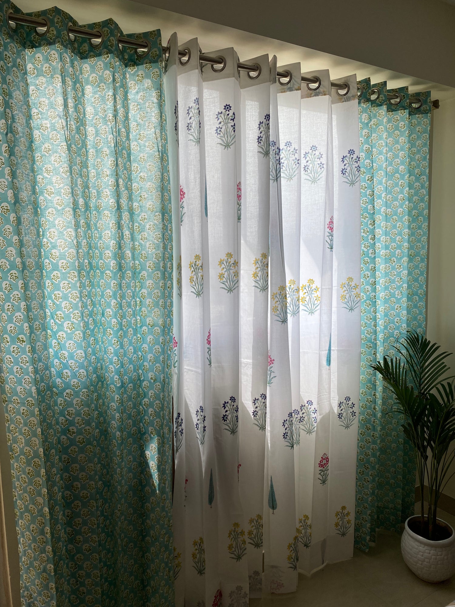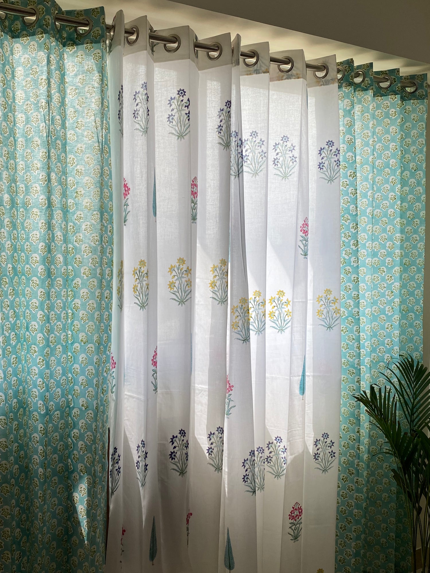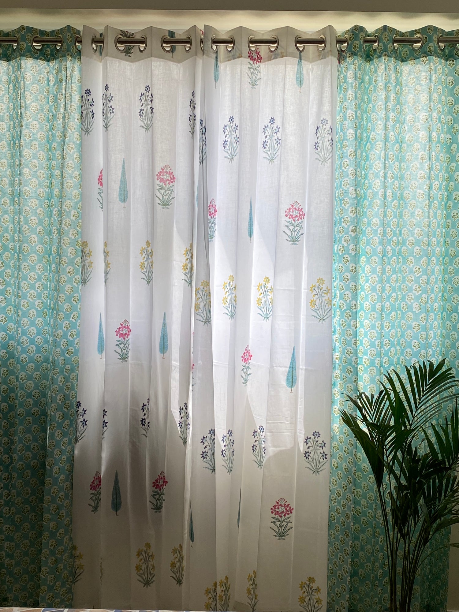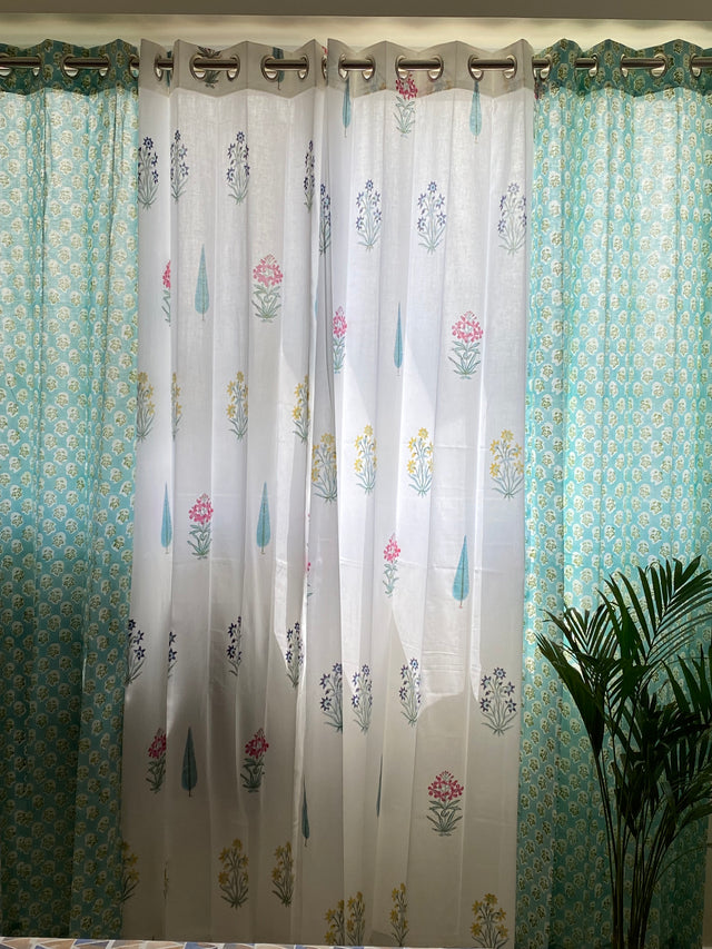 Set of 4 Blockprint Sheer Cotton Curtain