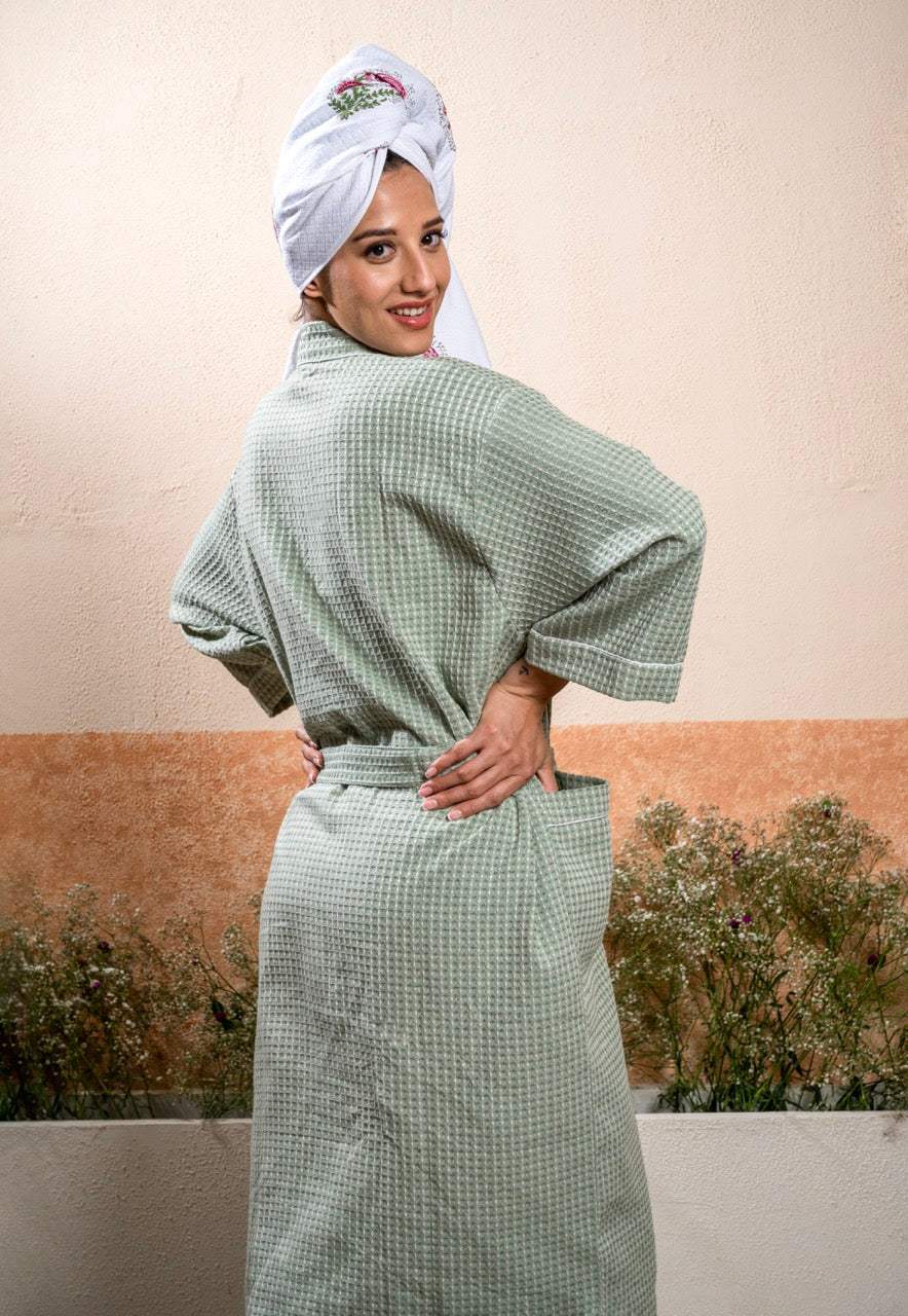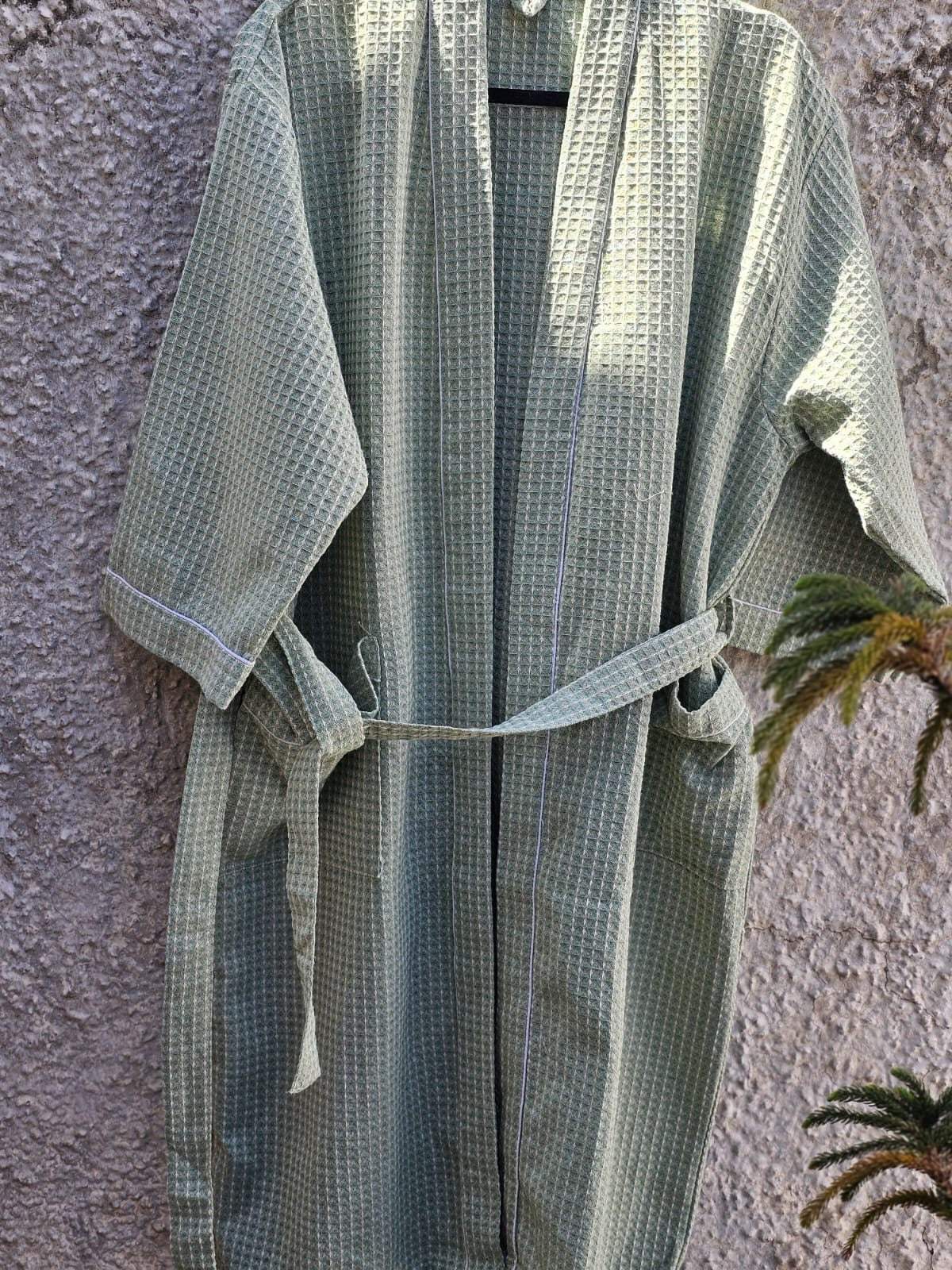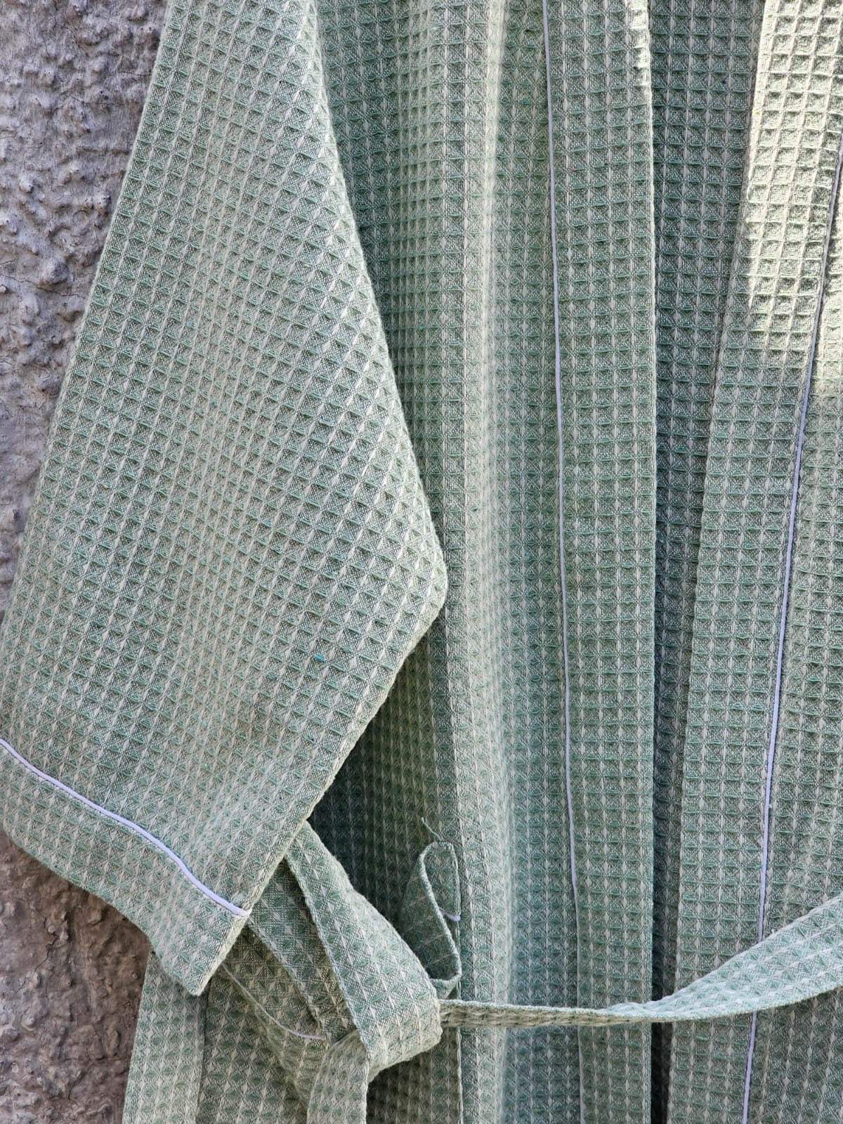 Sophisticated Green Unisex Cotton Waffle Bath Robe