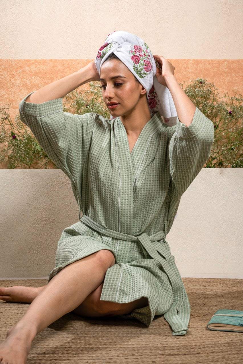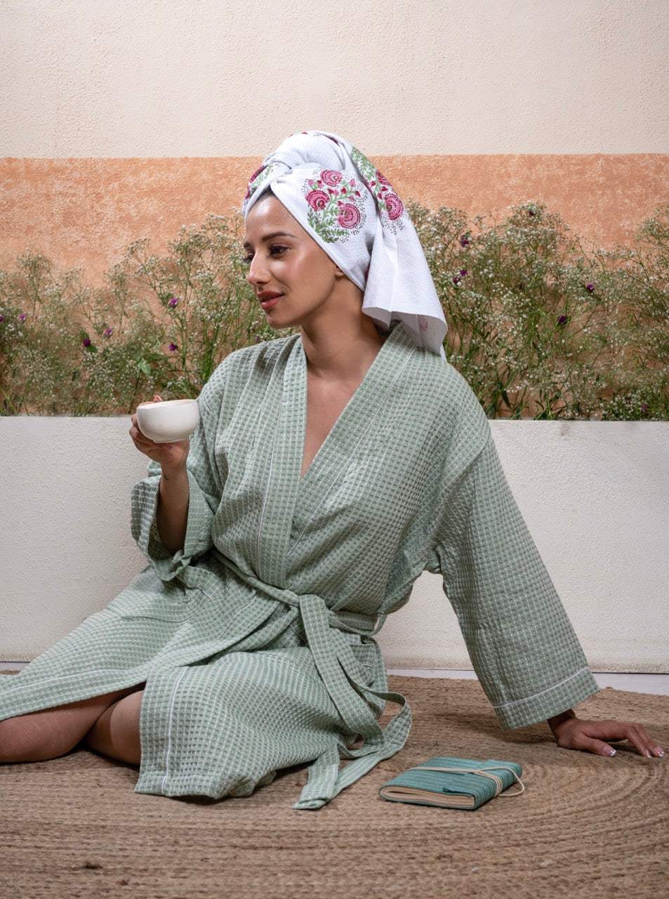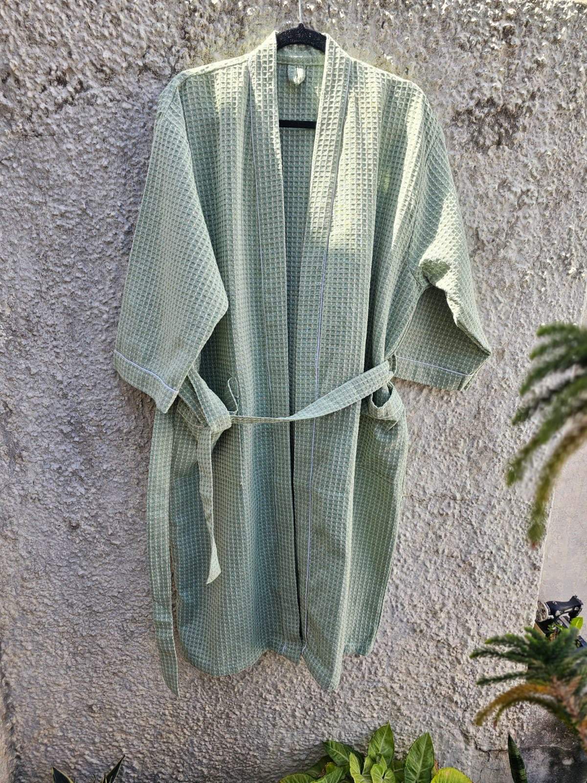 Sophisticated Green Unisex Cotton Waffle Bath Robe