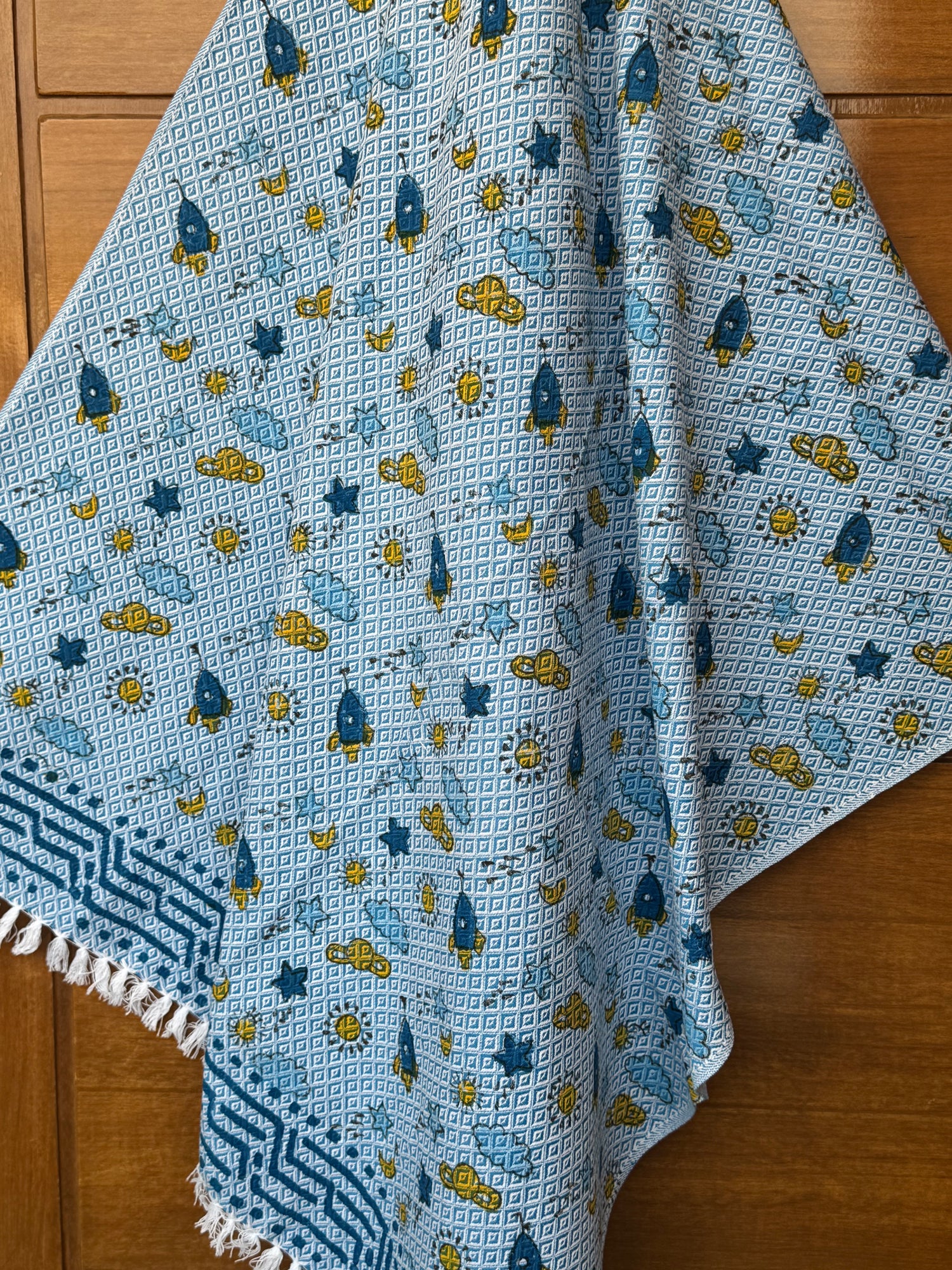 Space Adventure Blockprint Kids Towel – Cotton Jacquard Weave