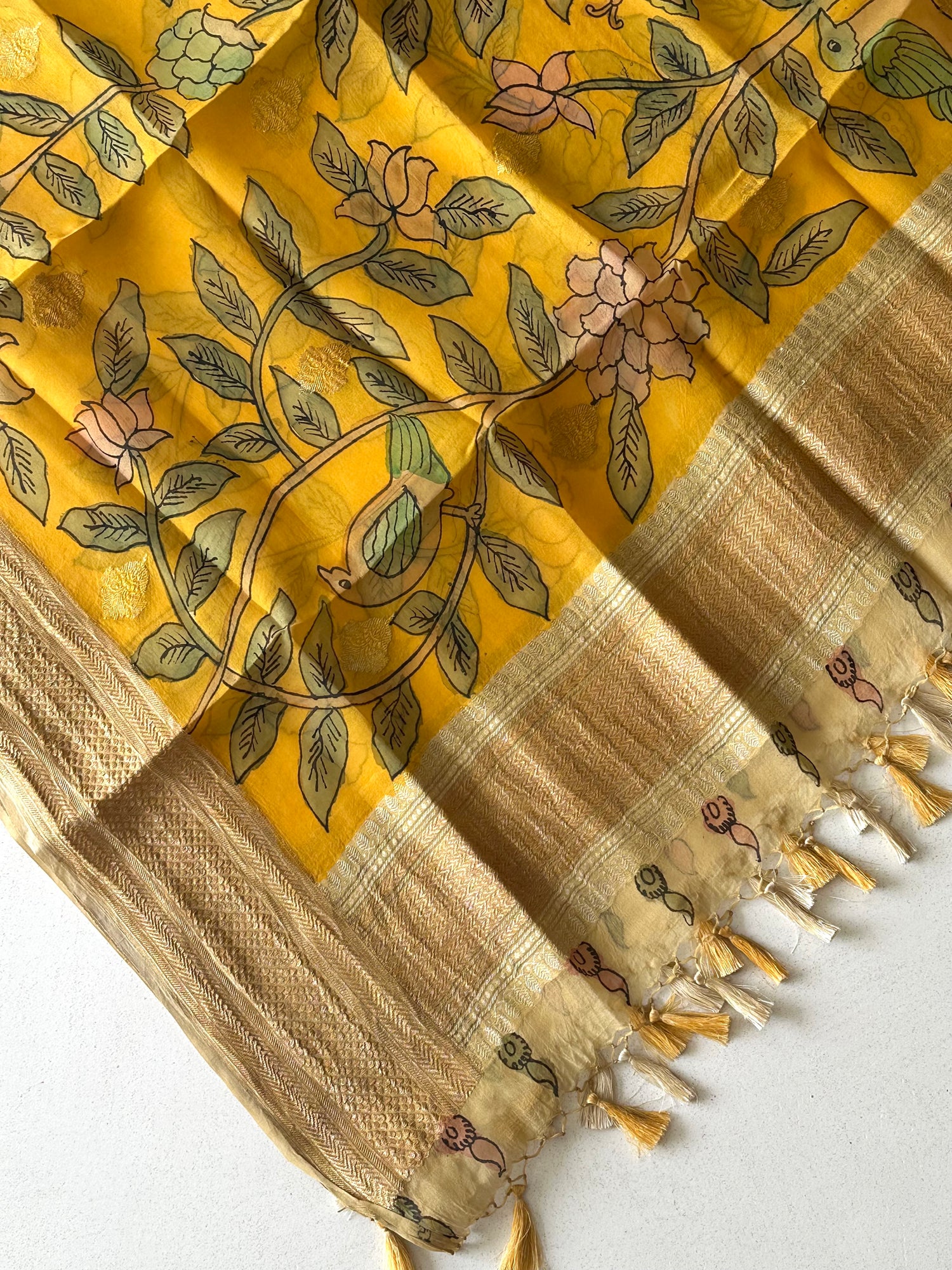 Sunehri Kusum Kalamkari Banarasi Organza Dupatta
