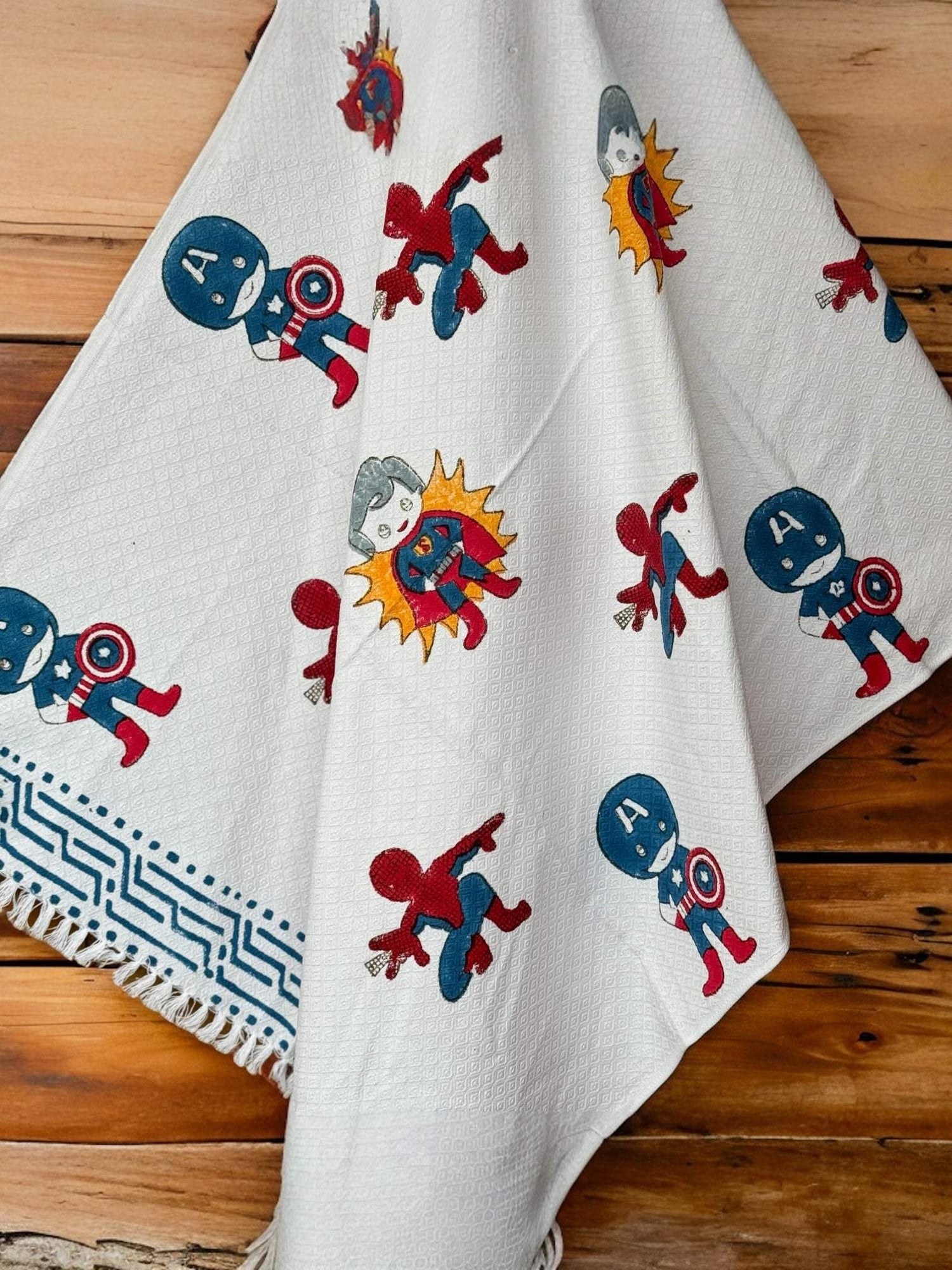 Super Hero Blockprint Kids Towel – Cotton Jacquard Weave