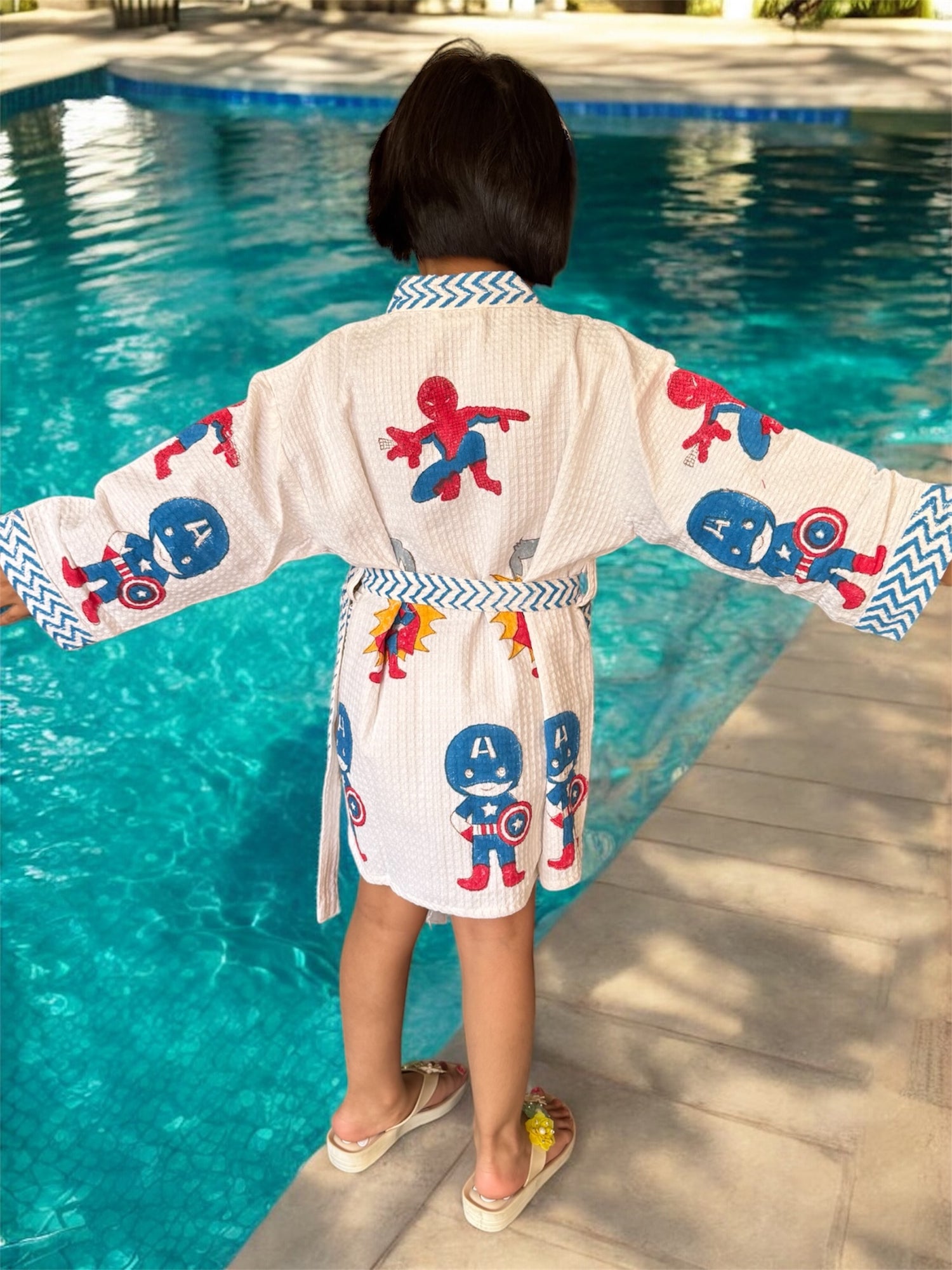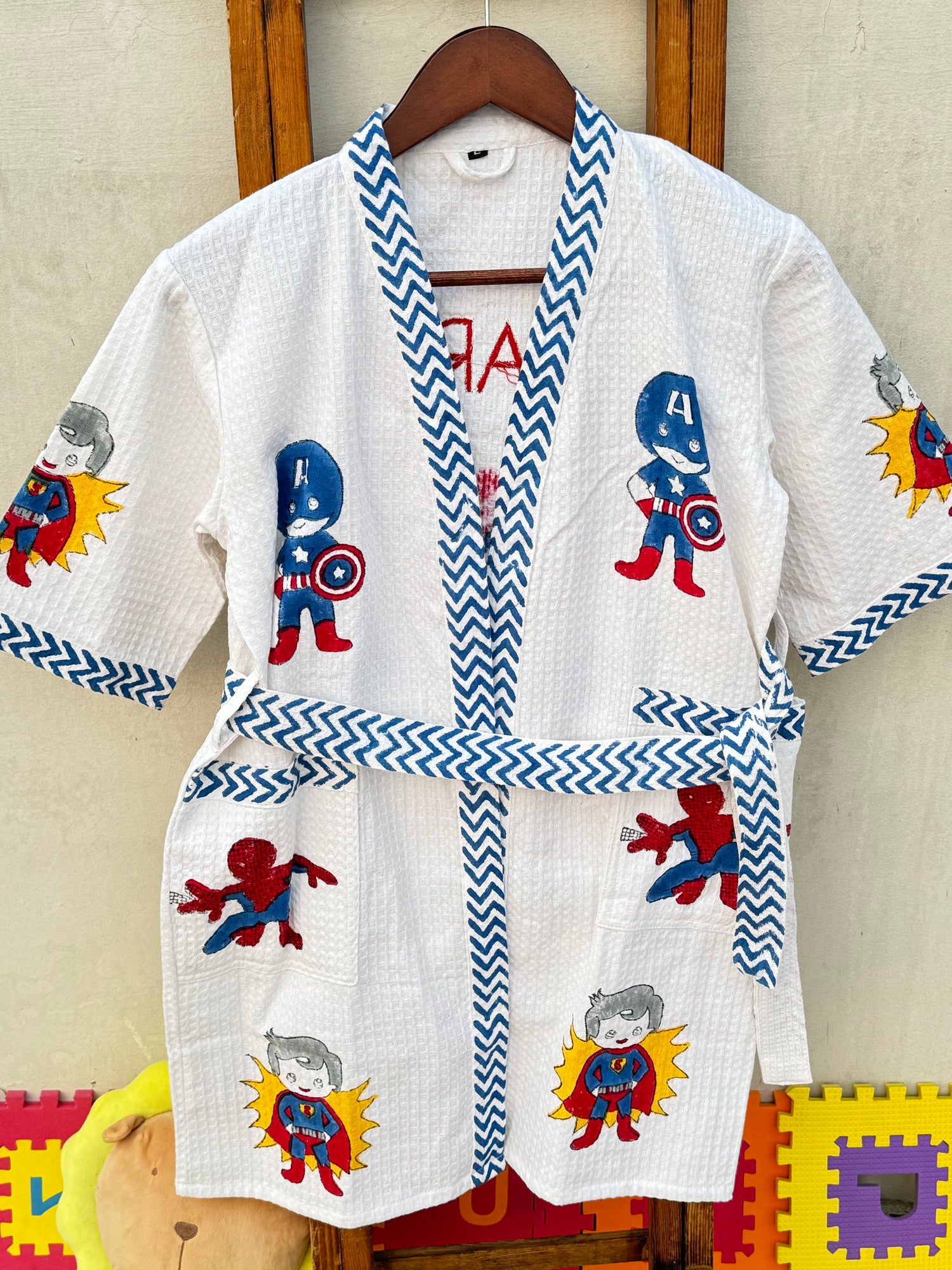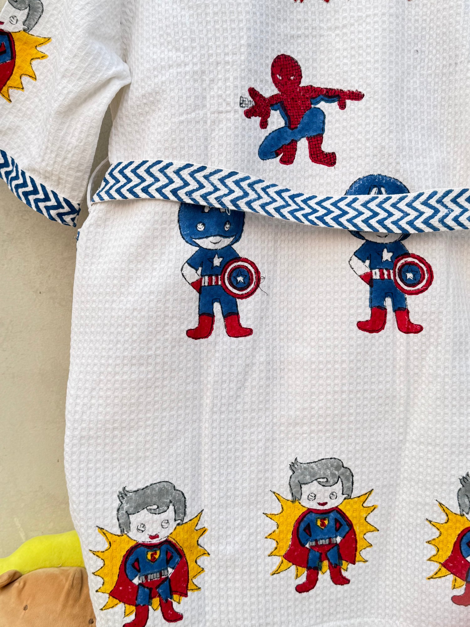Super Hero- Kids Cotton Waffle Bathrobe - Medium (5-8 years) is backordered and will ship as soon as it is back in stock.