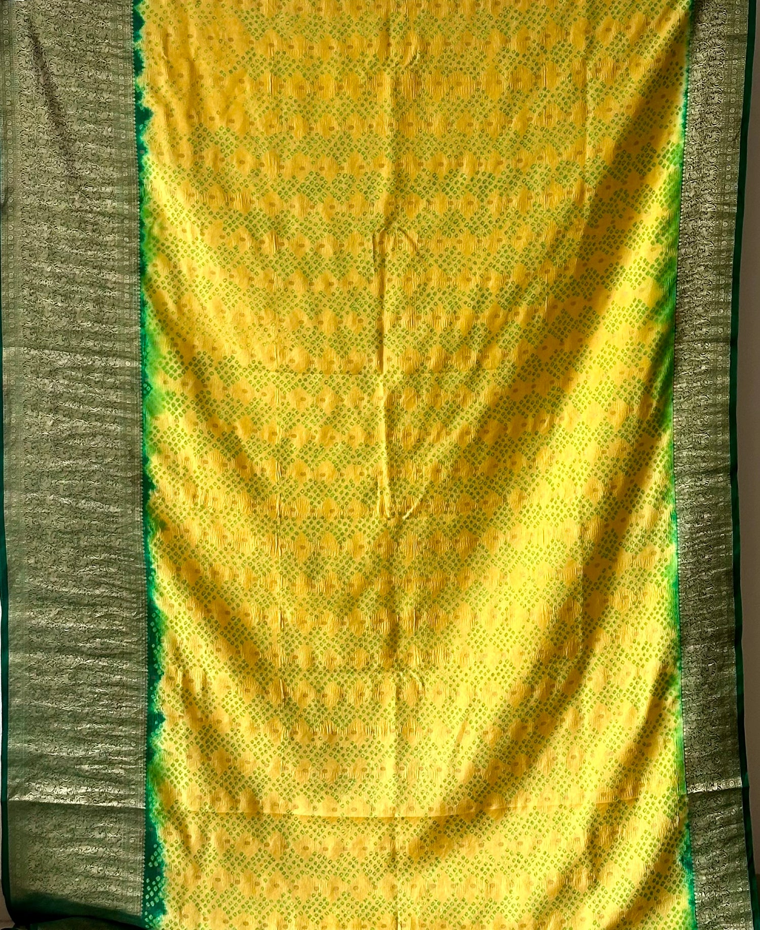 This Bandhani product has been tie-dyed using the traditional technique. Since it is a handcrafted product, it might have certain irregularities that add to its beauty and a natural outcome of human involvement in the process.