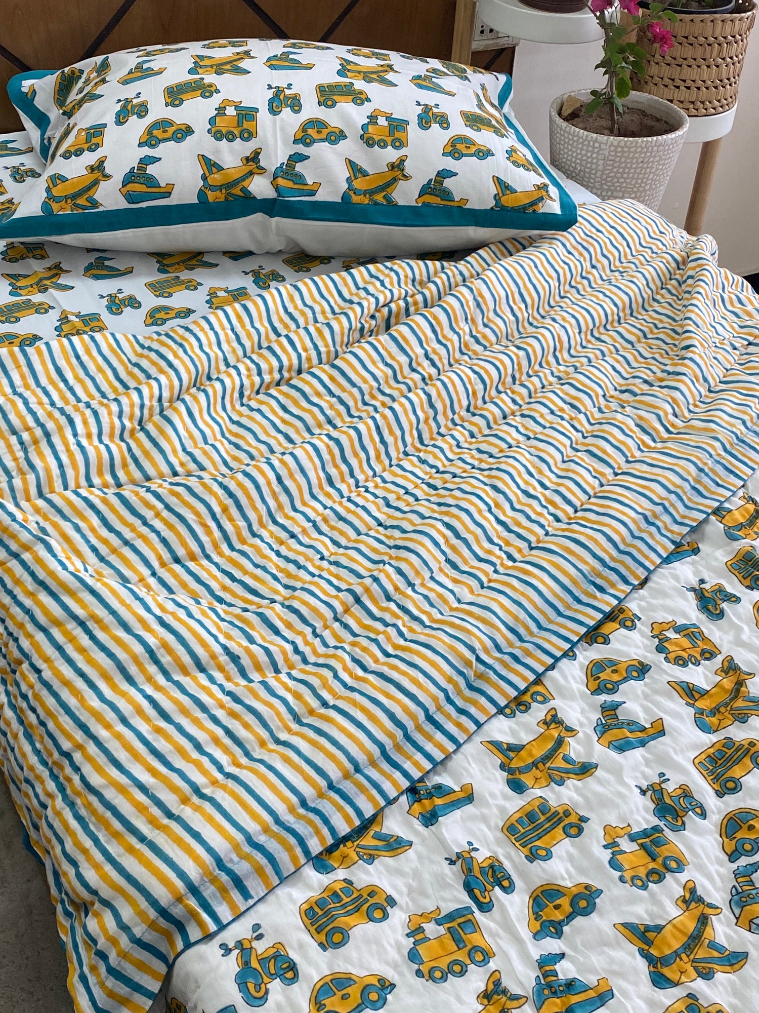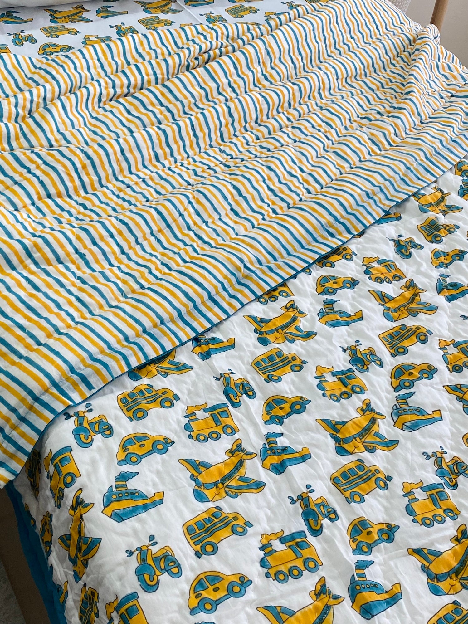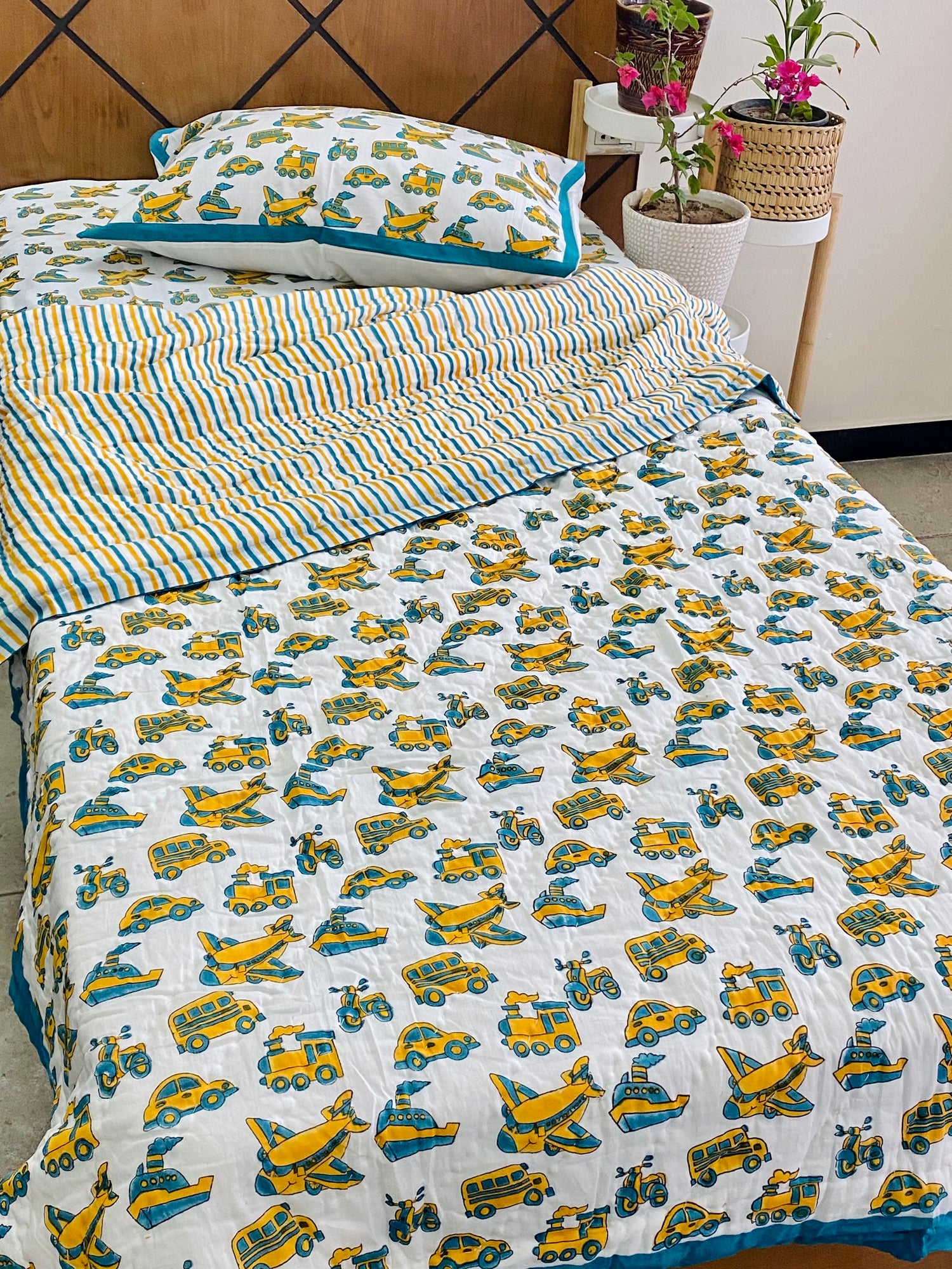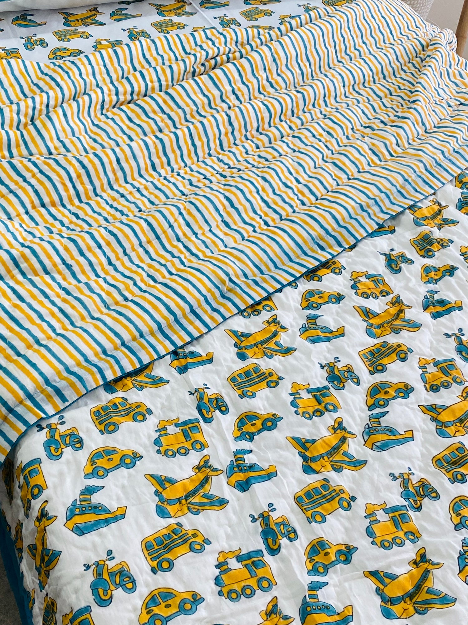 Cars Aeroplane Blockprint Kids Quilt - Single Size (90*60 inches) +6 yrs is backordered and will ship as soon as it is back in stock.