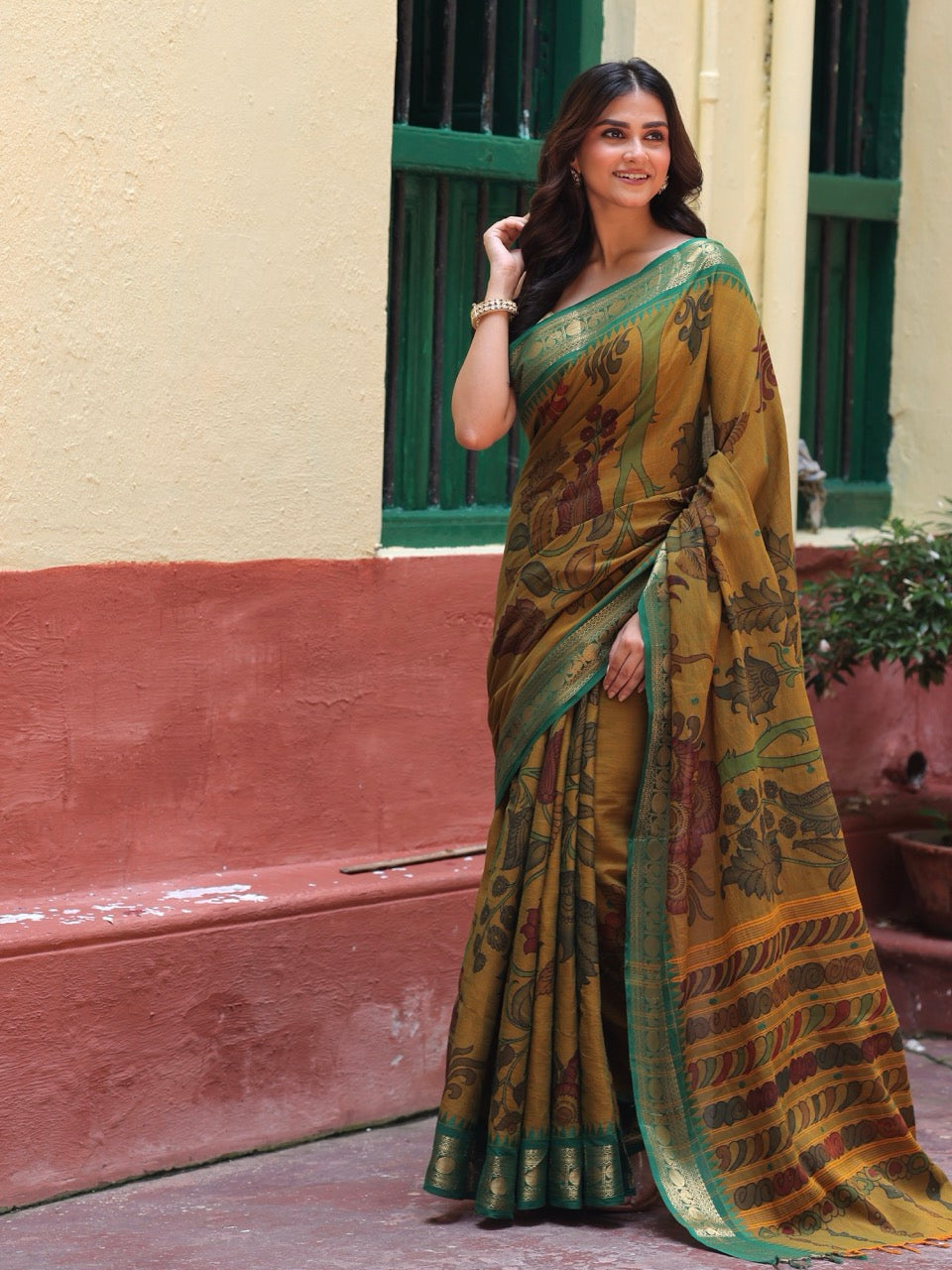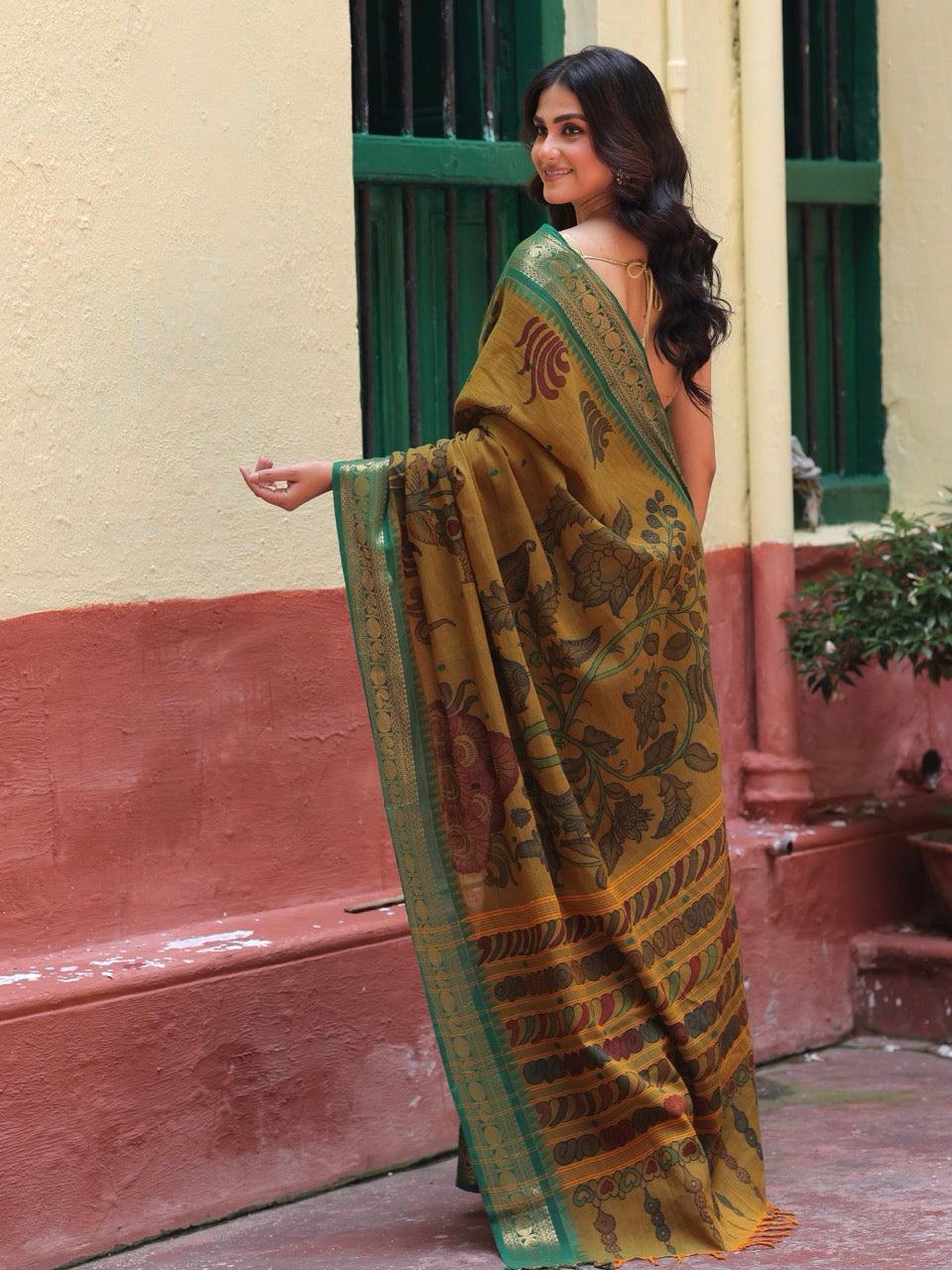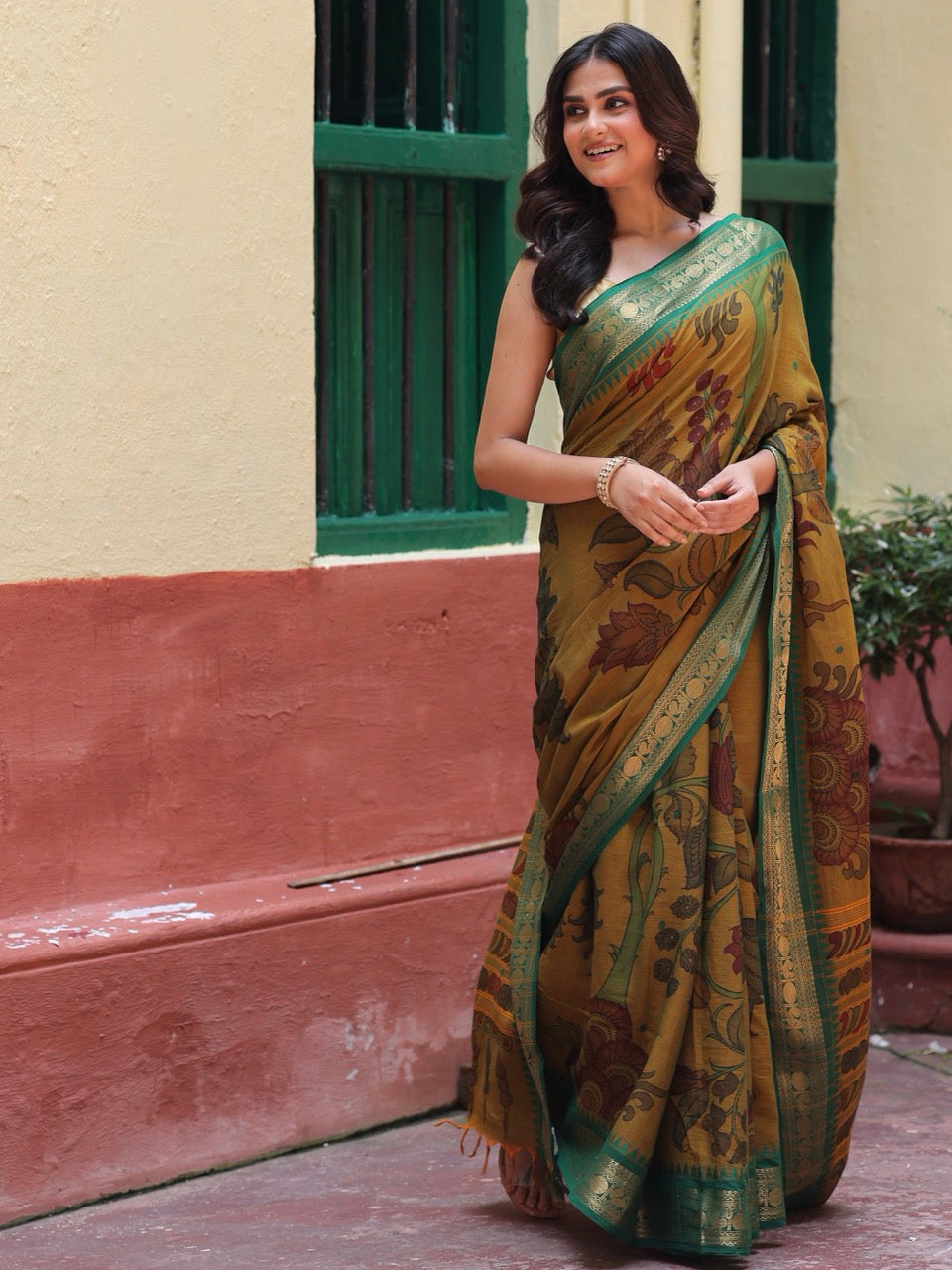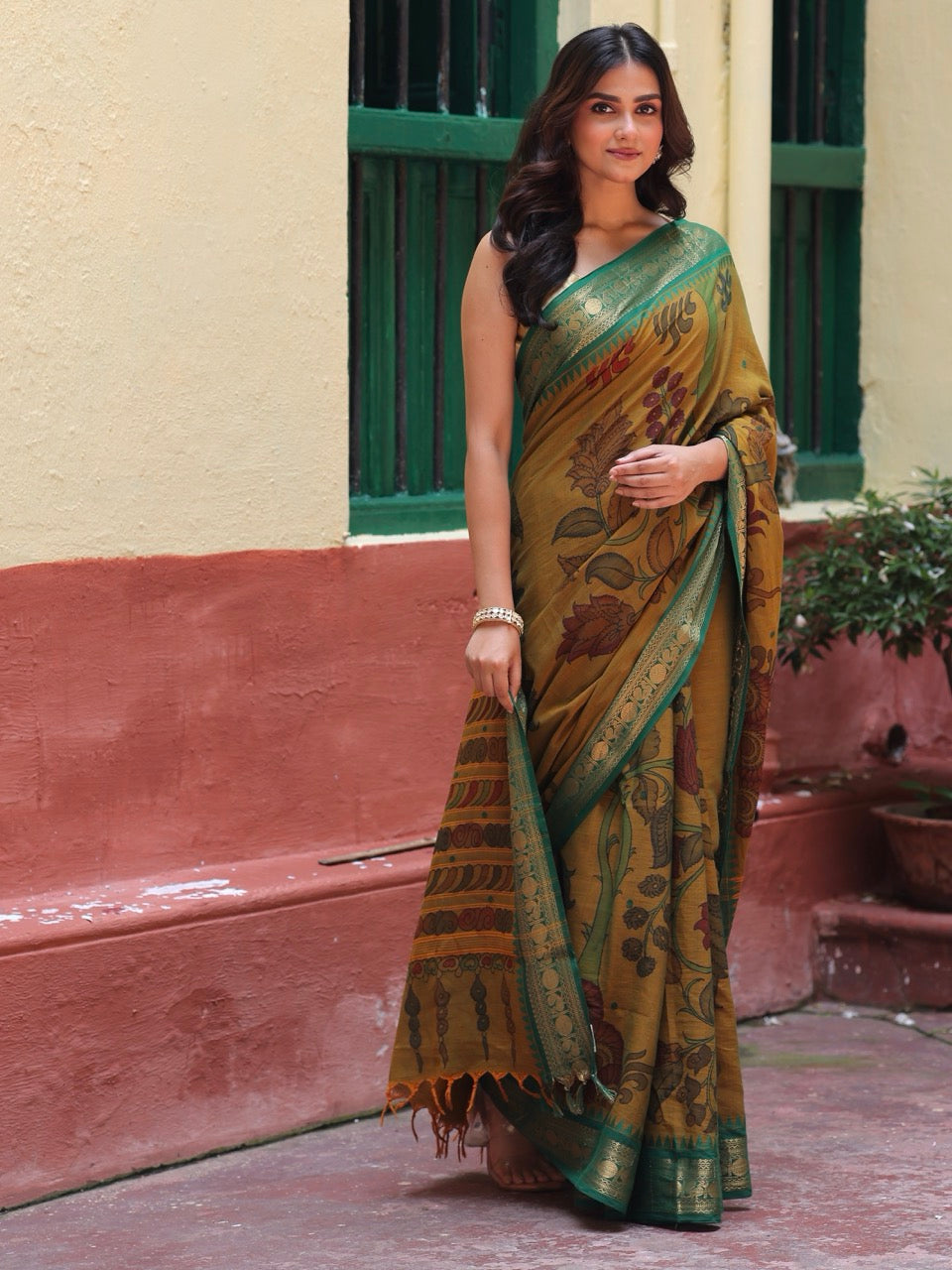 We meticulously capture these nuances in all our images. Due to the nature of the craft and the colors employed, Kalamkari is prone to bleeding. The 17-23 step Kalamkari process results in certain variations in the zari.