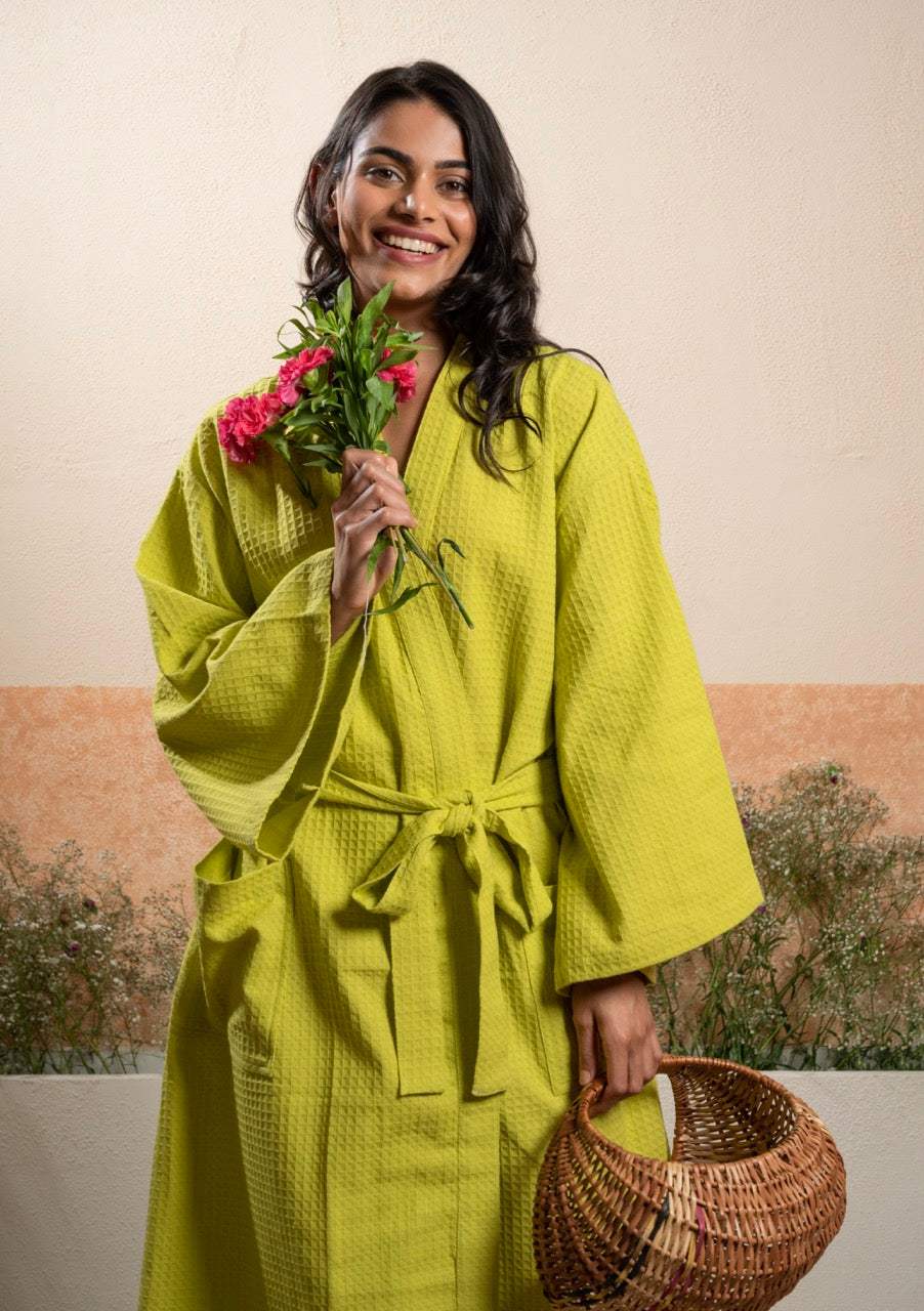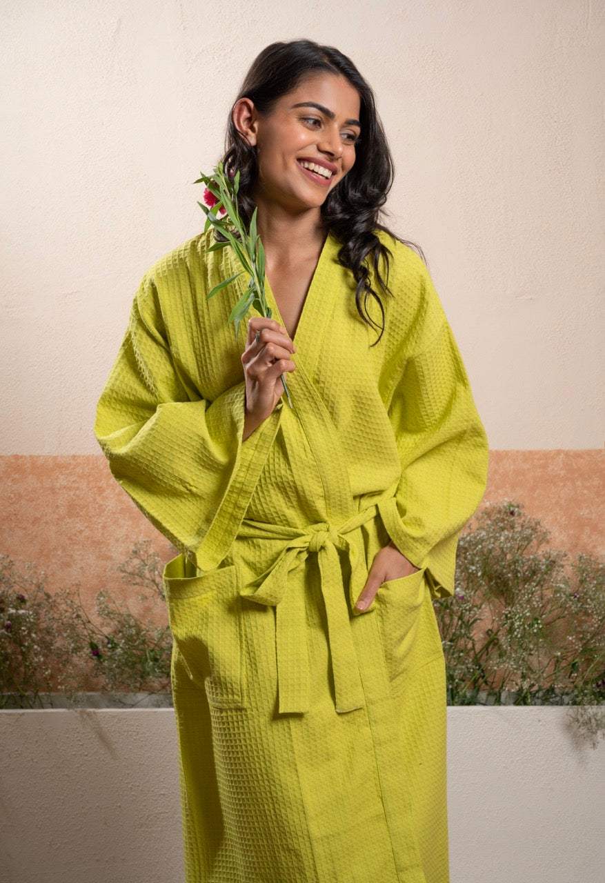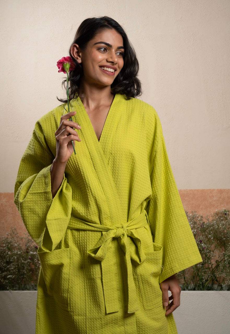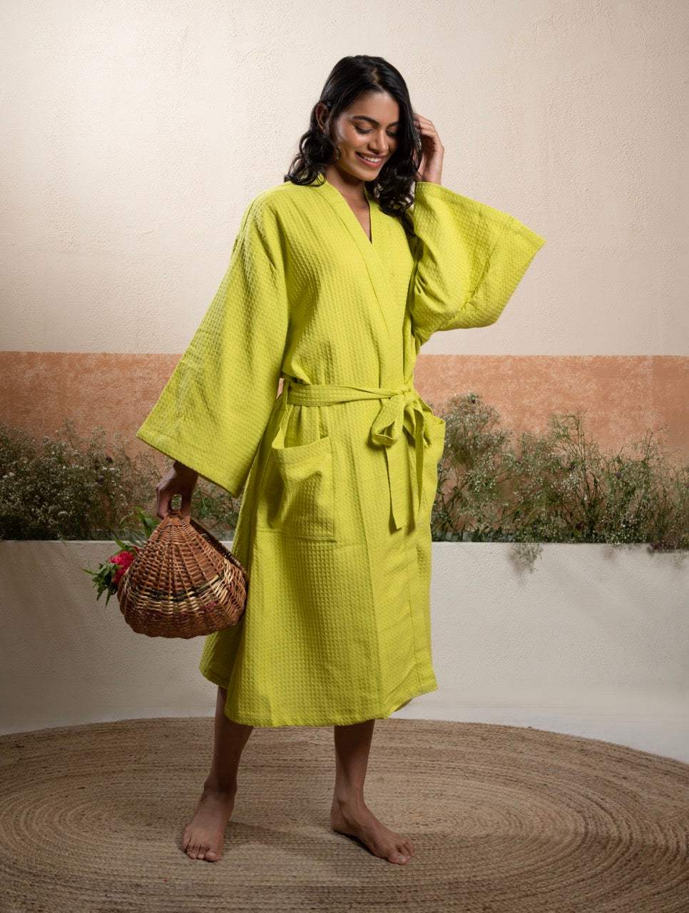 Vibrant Green Unisex Cotton Waffle Bath Robe