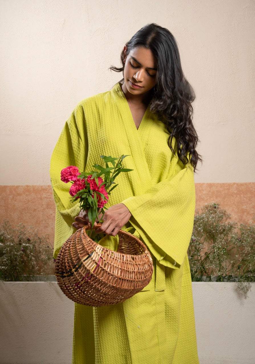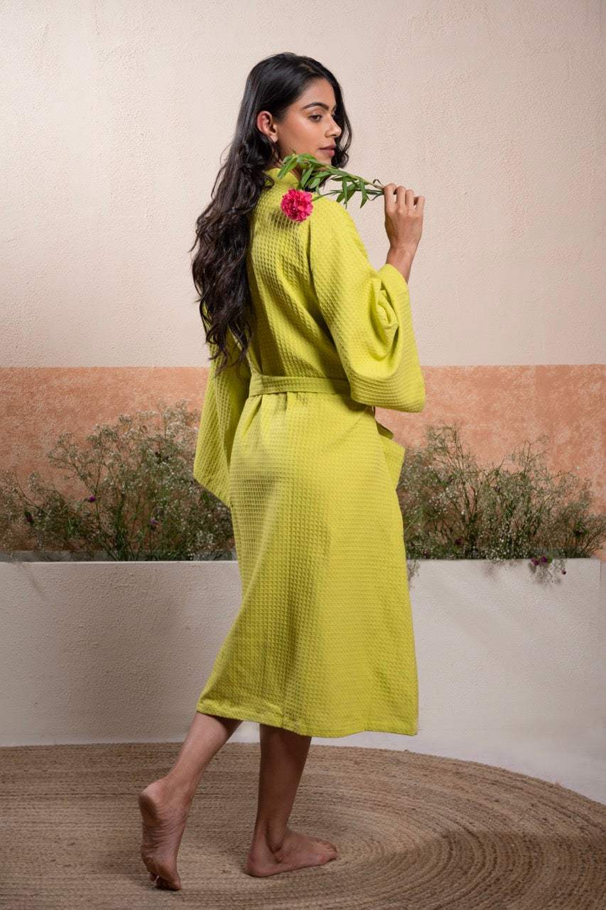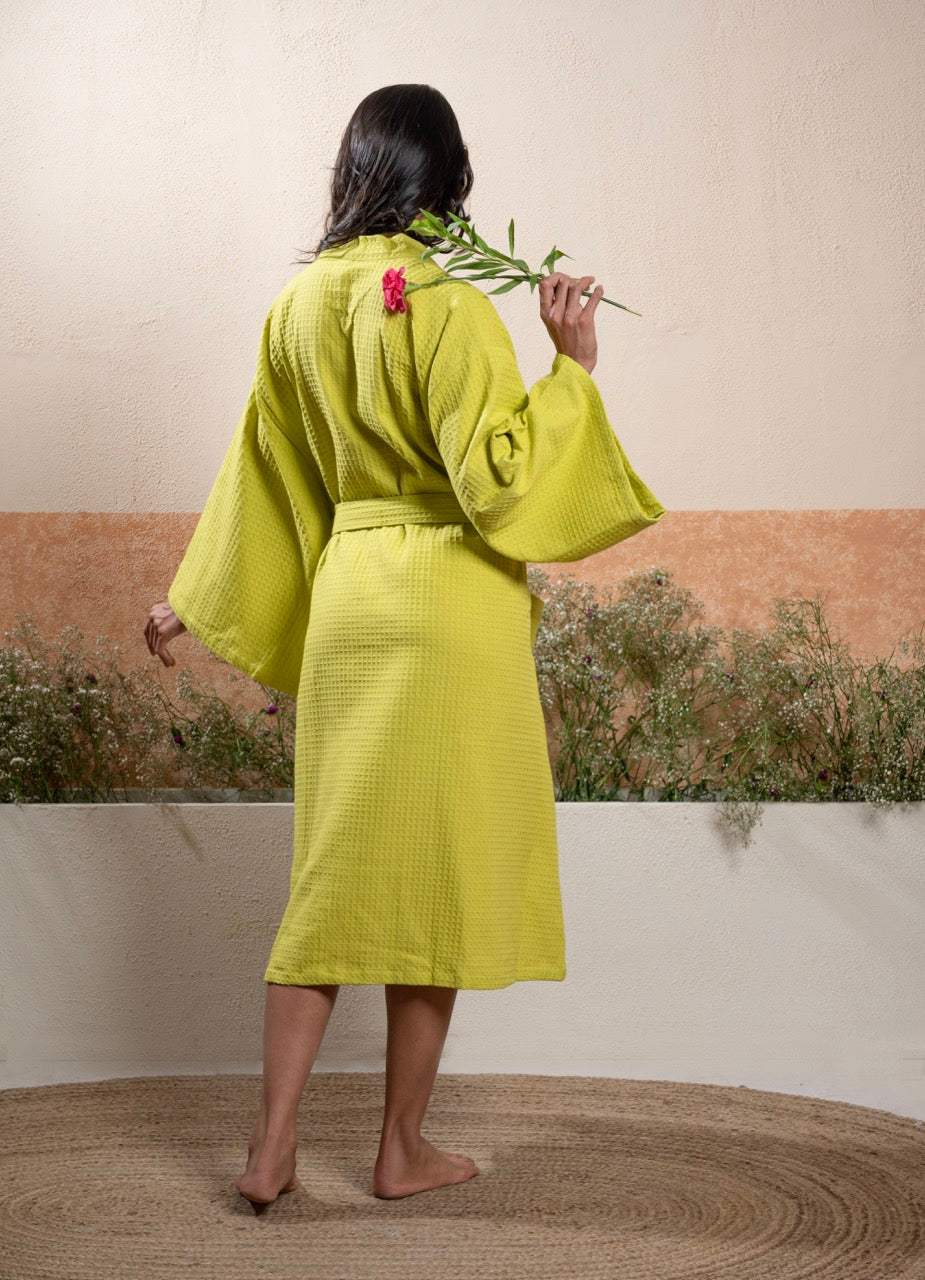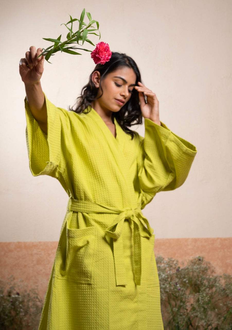 Vibrant Green Unisex Cotton Waffle Bath Robe