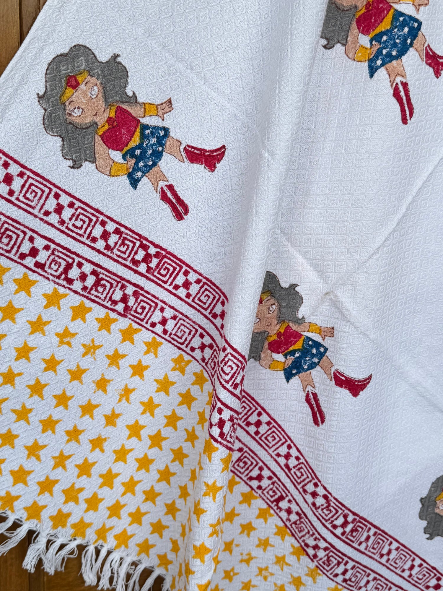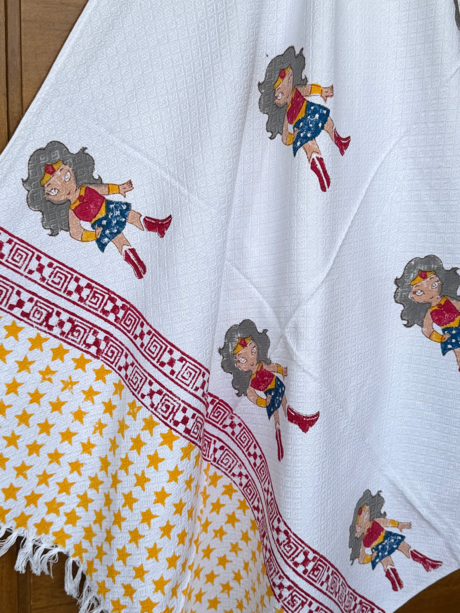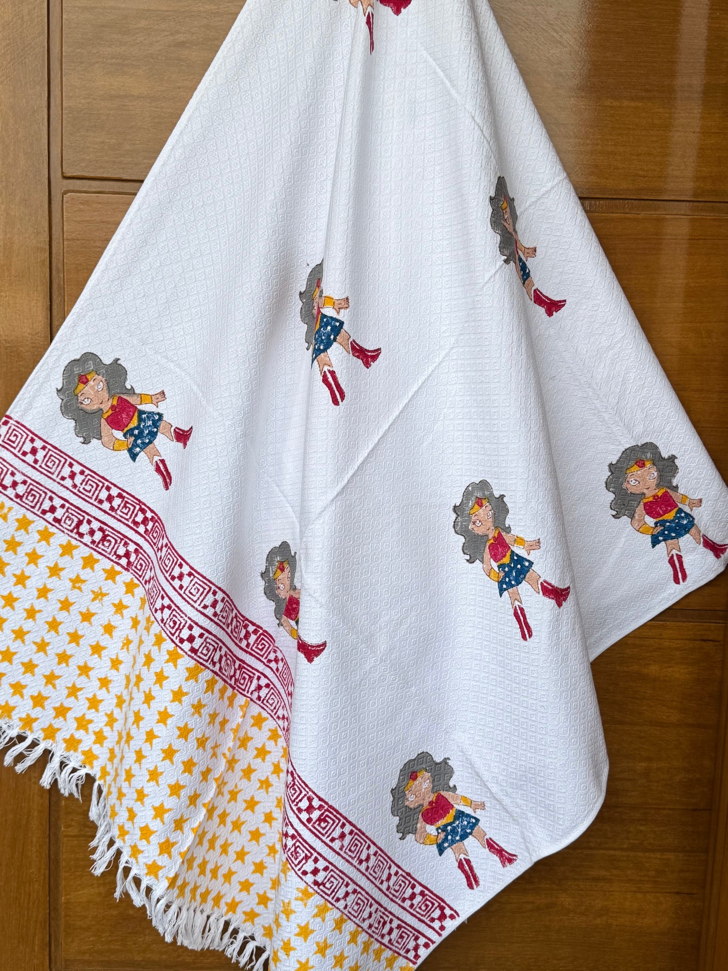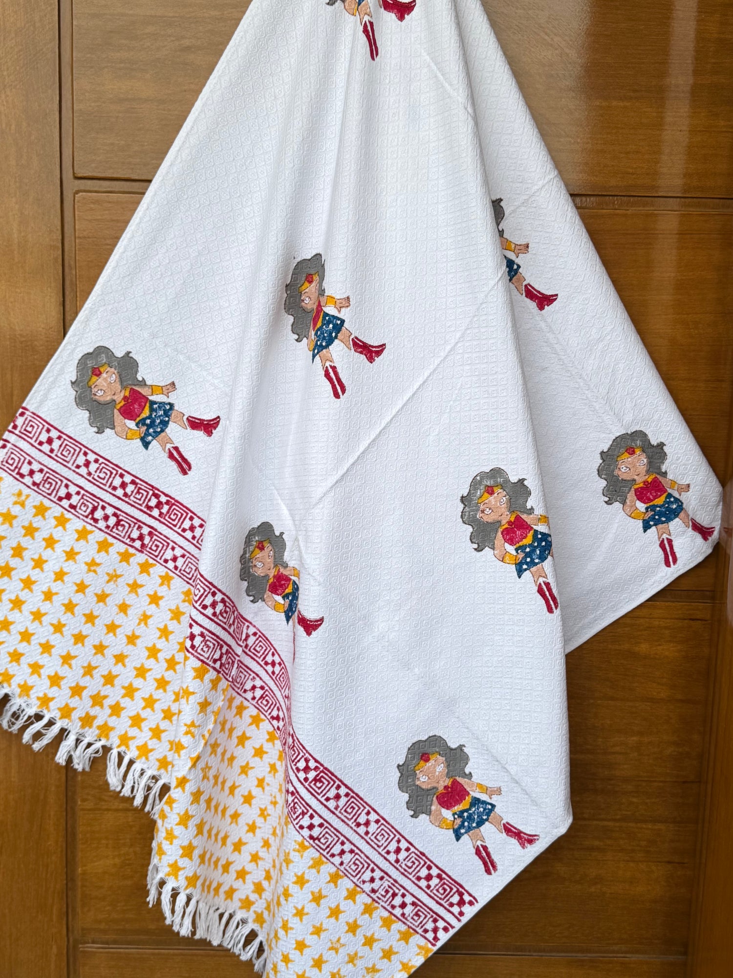 Wonder Women Blockprint Kids Towel – Cotton Jacquard Weave