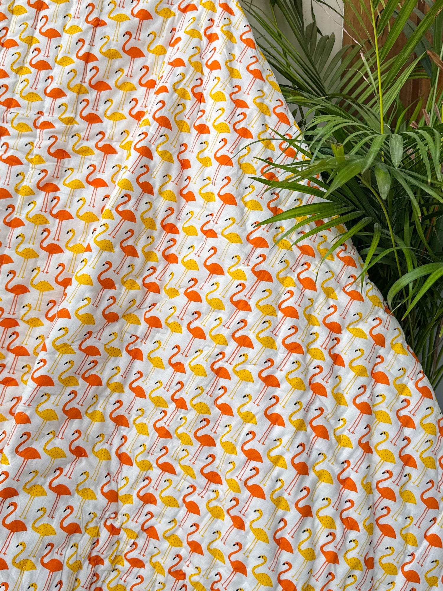 Yellow Orange Flamingo Kids Quilt - Baby Size (40*40 inches) 0-2 yrs is backordered and will ship as soon as it is back in stock.